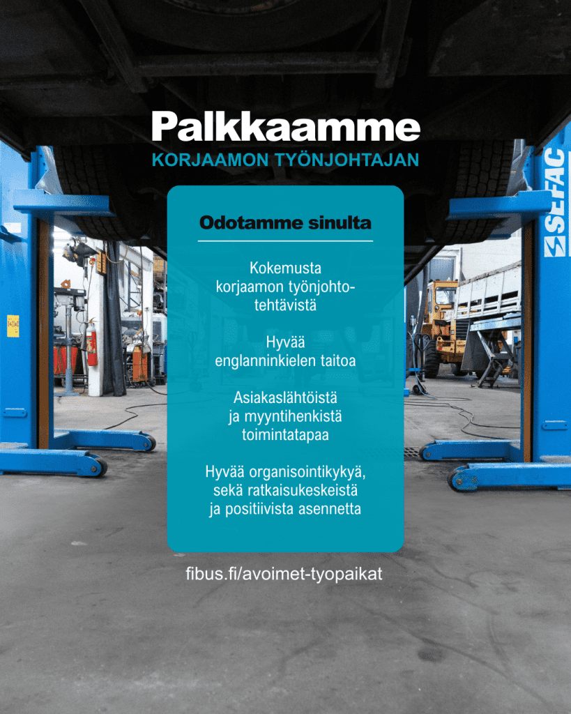 Etsimme kokenutta tekijää vetämään korjaamon arkea ja varmistamaan sujuvan asiakaspalvelun raskaankaluston parissa.